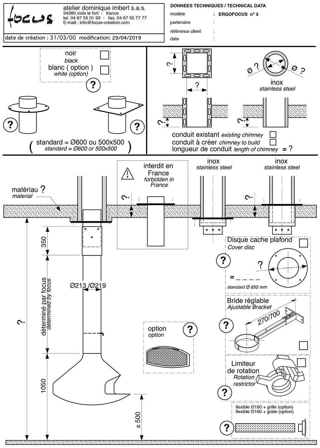 Камин устанавливается подвесным способом с возможностью поворота корпуса на 360 градусов. Корпус камина имеет необычную вытянутую форму с широким очагом (95 см), что позволяет наслаждаться игрой пламени и тлением дров с любой точки в помещении. Ergofocus выпускается в двух цветах: белом и матово-черном.