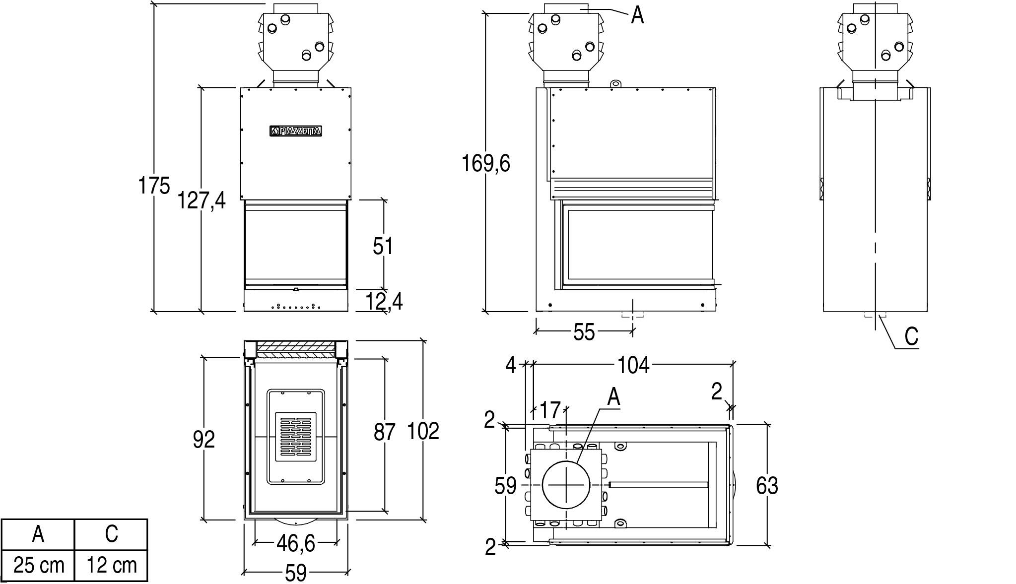 Каминная топка Piazzetta MA 272 SL Plus — трёхсторонняя топка с вытянутыми боковыми стёклами. Для оптимизации производительности оснащена верхним дымовым теплообменником, двумя трубчатыми теплообменниками и дефлектором, расположенным внутри очага.